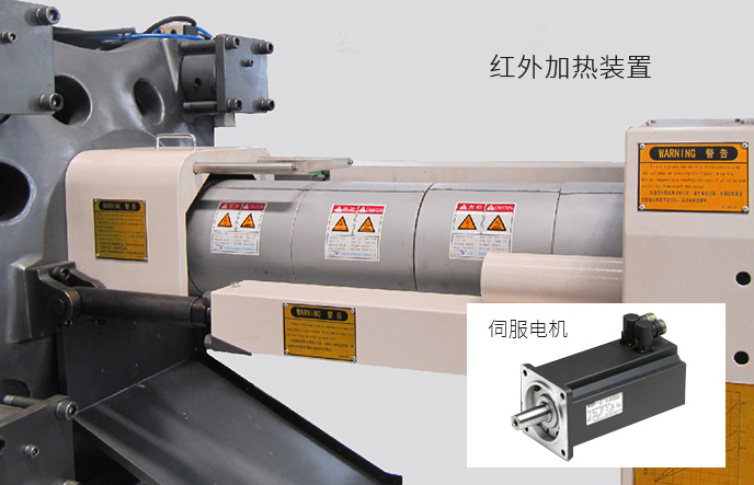 伺服驅(qū)動(dòng)器在鎖模保壓冷卻等階段能輸出最大壓力但保持速度接近零速,因而功率消耗小,更節(jié)能 料筒采用納米遠(yuǎn)紅外高效節(jié)能加熱裝置,改善了傳統(tǒng)加熱圈電熱轉(zhuǎn)換效率低、熱傳導(dǎo)率低、表面溫度高“兩低一高”缺點(diǎn),比傳統(tǒng)加熱圈節(jié)能30%-40%